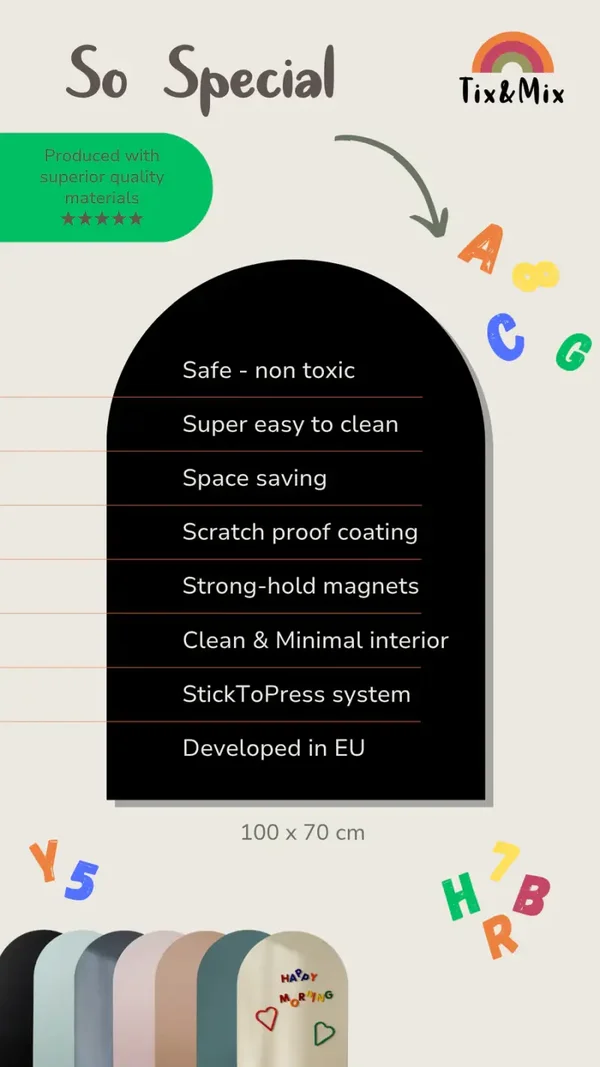 Ben je het beu dat schermen de speeltijd overnemen? Het Tix&Mix magnetische wandbord is de perfecte manier om je kleintjes bezig te houden, te laten leren en plezier te laten maken – terwijl jij even van een momentje voor jezelf geniet.