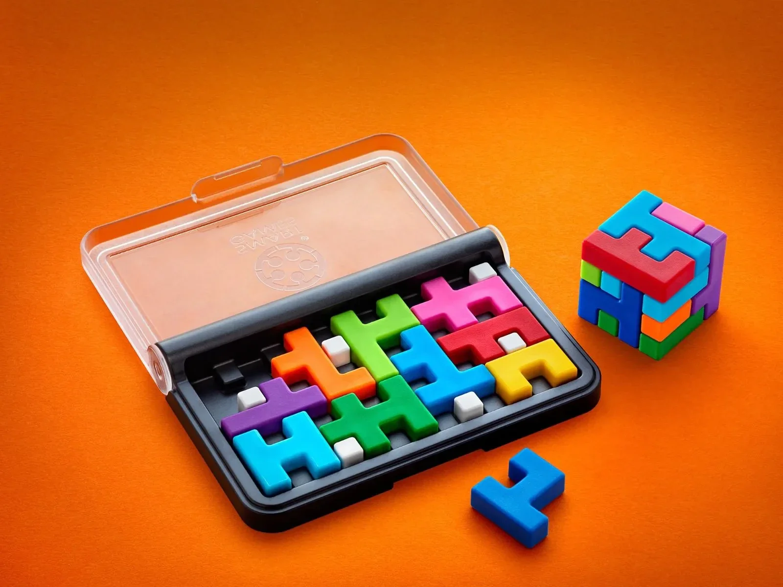 Groot plezier in een klein formaat. Vul het spelbord (2D) of bouw een kleurrijke kubus (3D) met 10 soft-touch puzzelstukken. Een tactiele breinbreker met 120 opdrachten voor jong én oud, die je overal mee naartoe neemt.