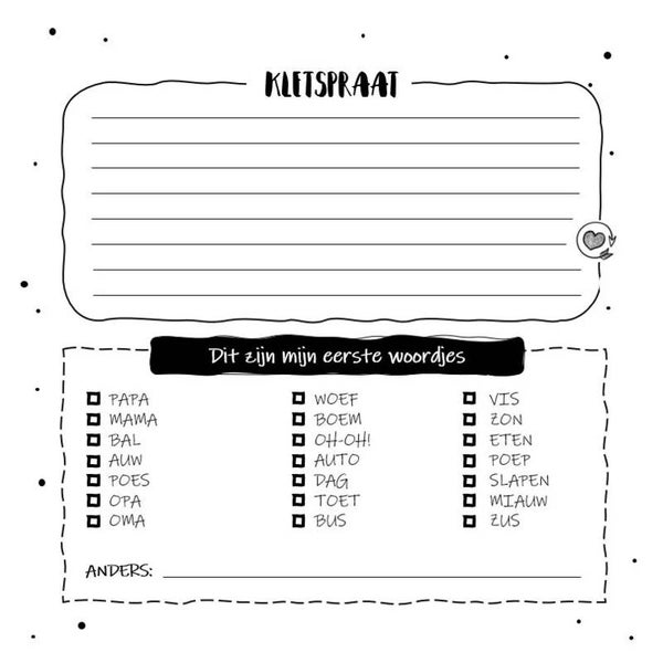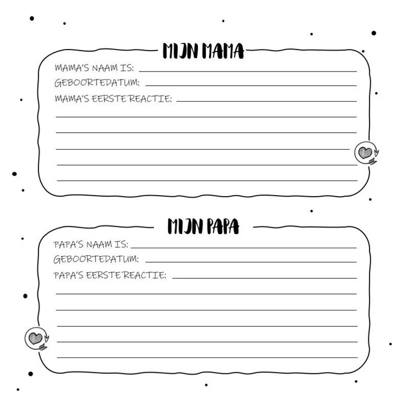 Vul hier alle mijlpalen, groeicurves, dagelijkse bezigheden en al het andere wat voor jullie belangrijk is in.