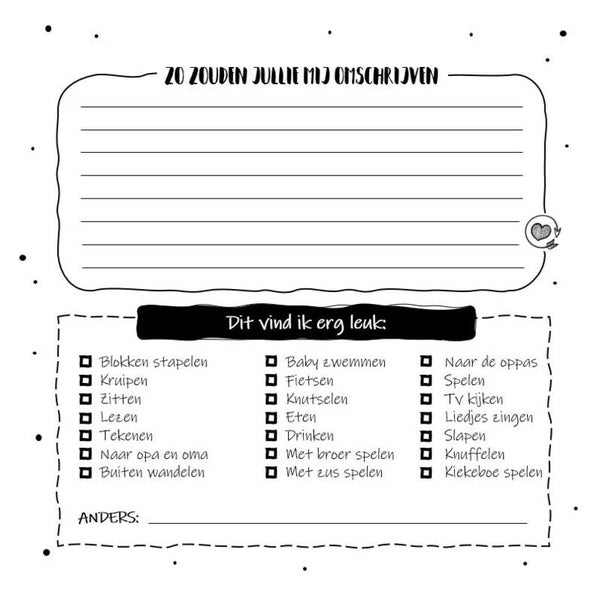 Met dit leuke trendy invulboek kunnen jullie de jaren van 1 t/m 4 jaar van jullie kindje vastleggen.
