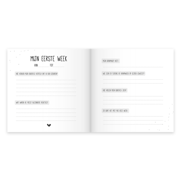 Met dit leuke trendy invulboek kunnen jullie het eerste jaar van jullie kindje vastleggen.